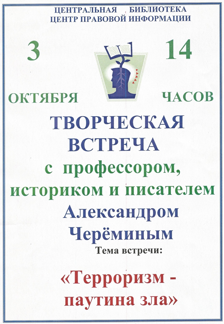 Творческая встреча с профессором, историком, писателем А. Черёминым "Терроризм - паутина зла" в Центральной библиотеке