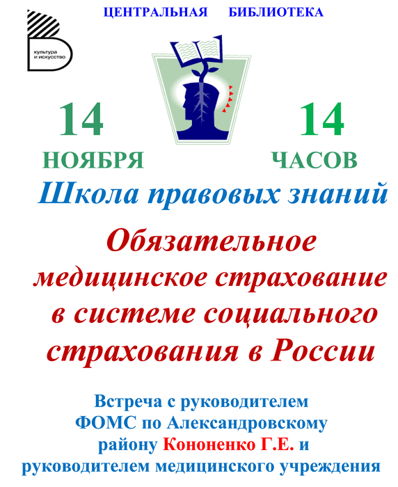 Школа правовых знаний "Обязательное медицинское страхование в системе социального страхования в России" в Центральной библиотеке