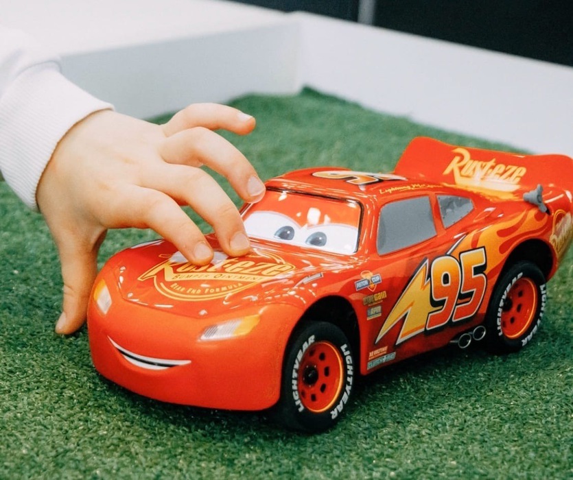 Гонщик Молния Маккуин умеет удивляться, как живой, будто он только что сошел с экрана твоего любимого мультфильма "Тачки". Выражает эмоции голосом, мимикой и движениями, которые ему обеспечивают специальные моторы внутри.