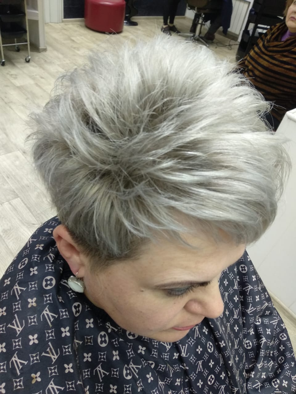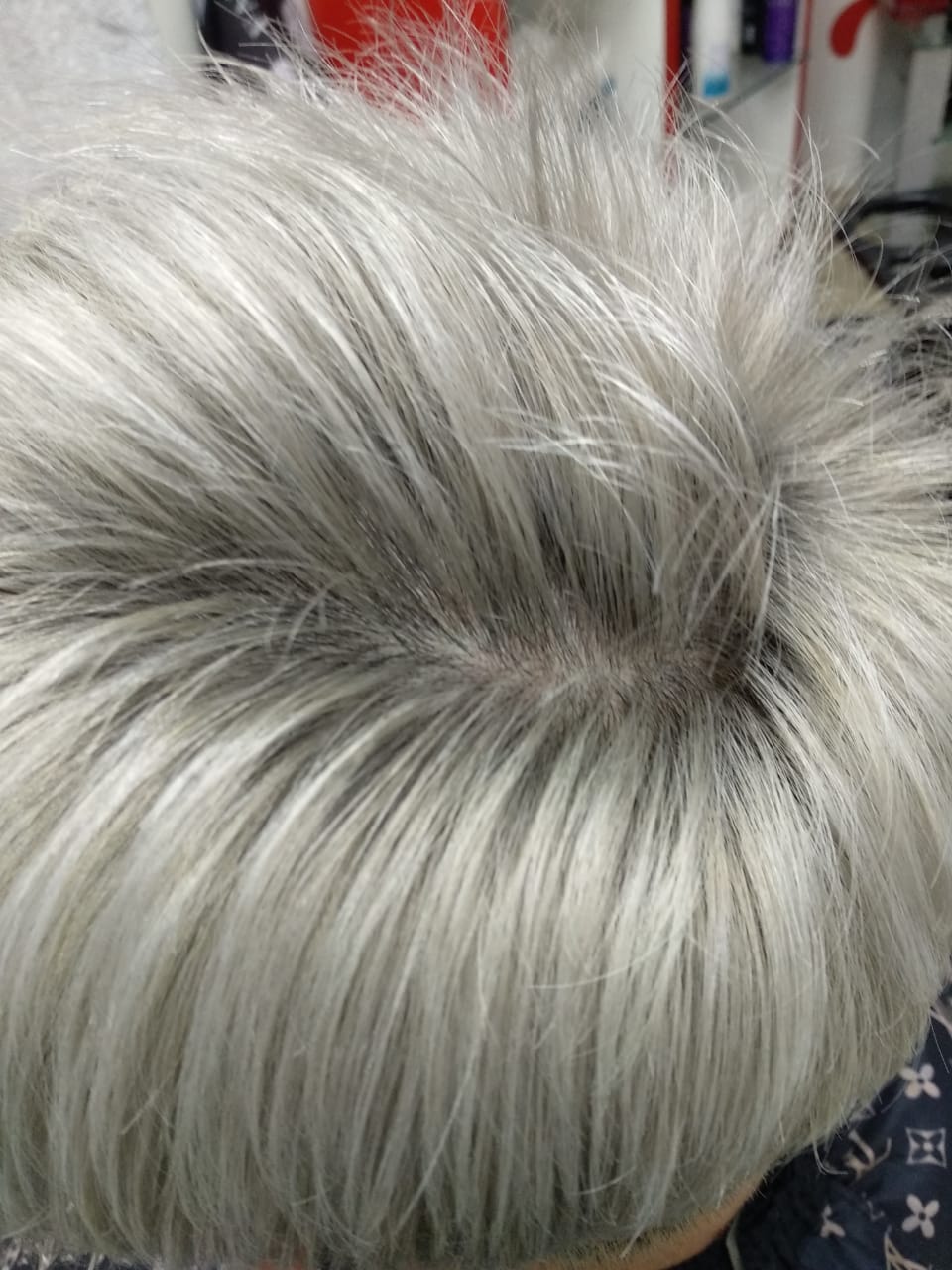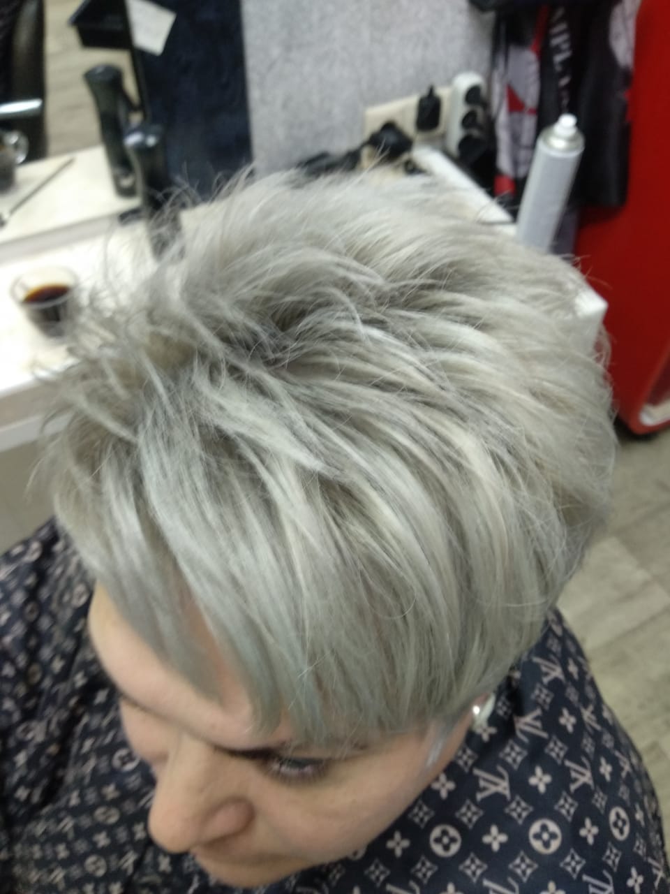 Теперь посмотрим на работу тонера в деле (использован стальной оттенок). Спустя 20 минут после нанесения - ровный, чистый, плотный ледяной оттенок блонда без намека на желтизну.