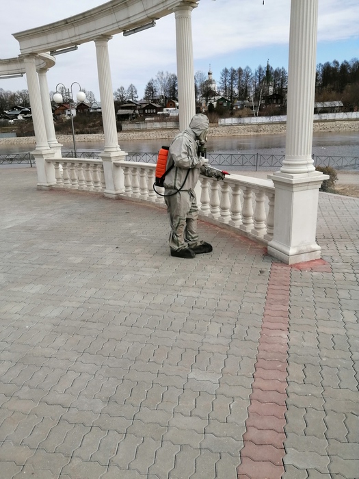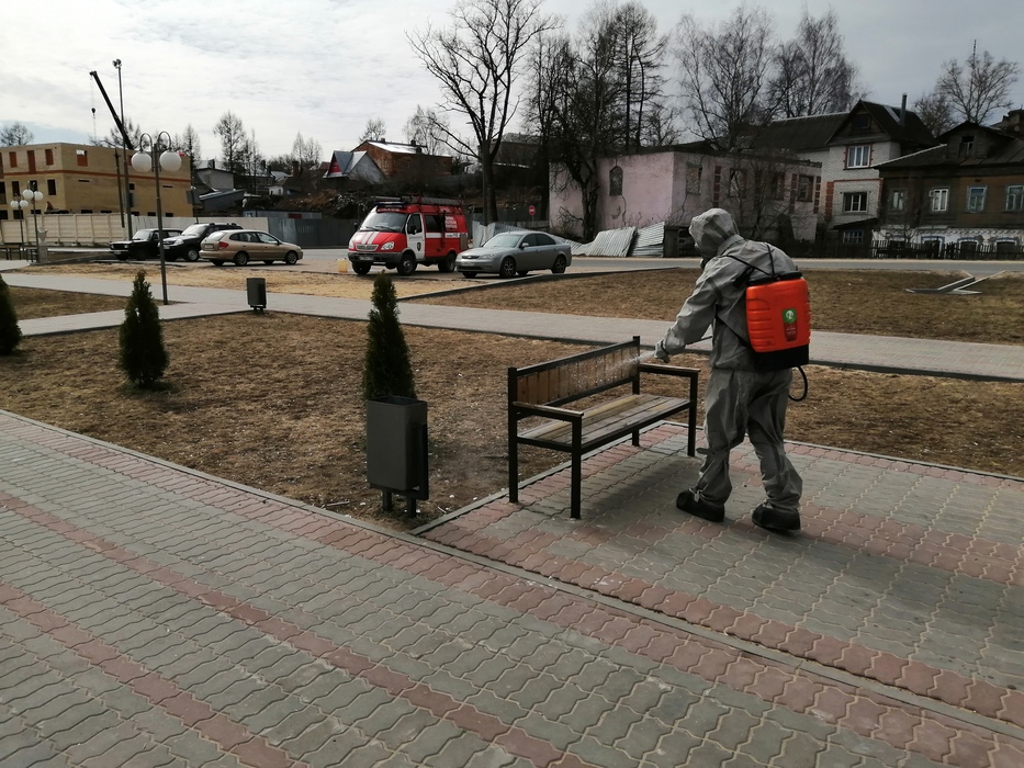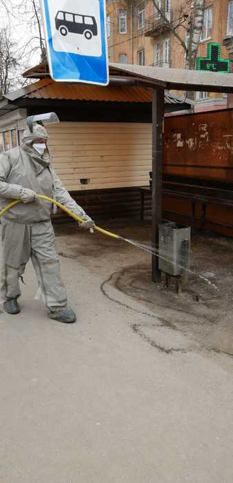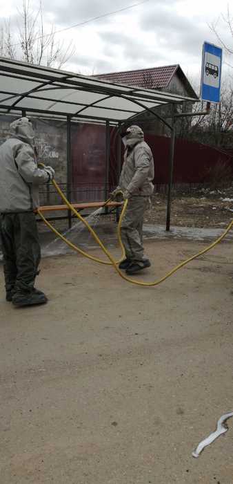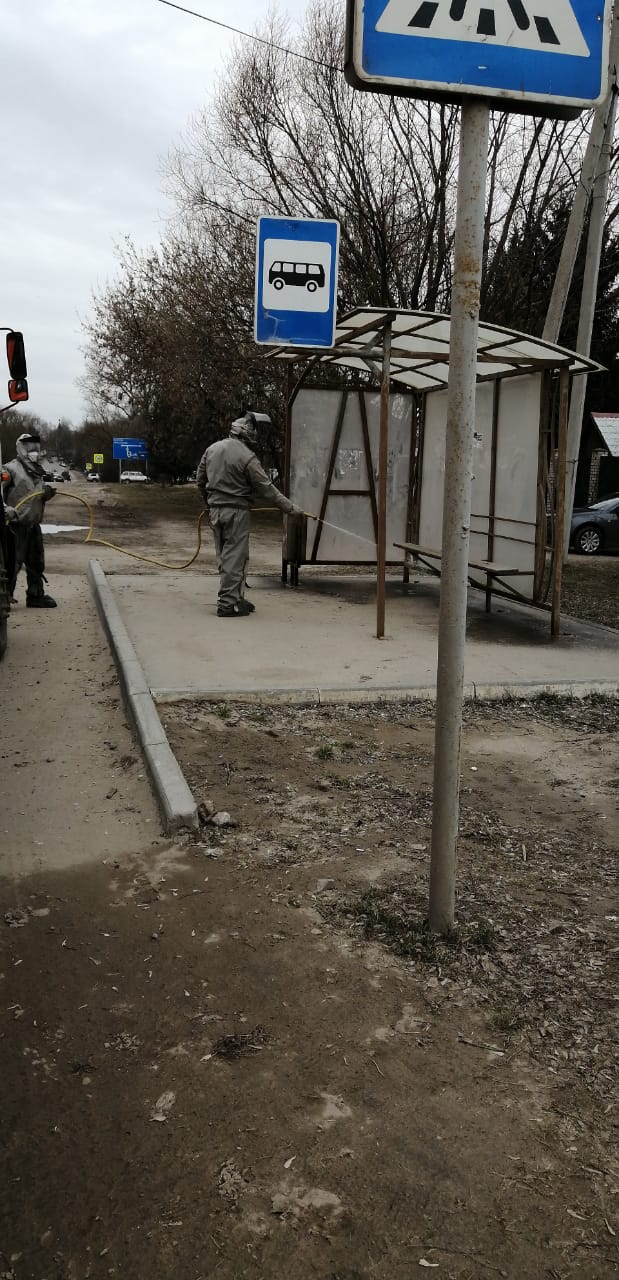 Обработка специальным дезинфицирующим средством улиц, остановок, детских площадок.