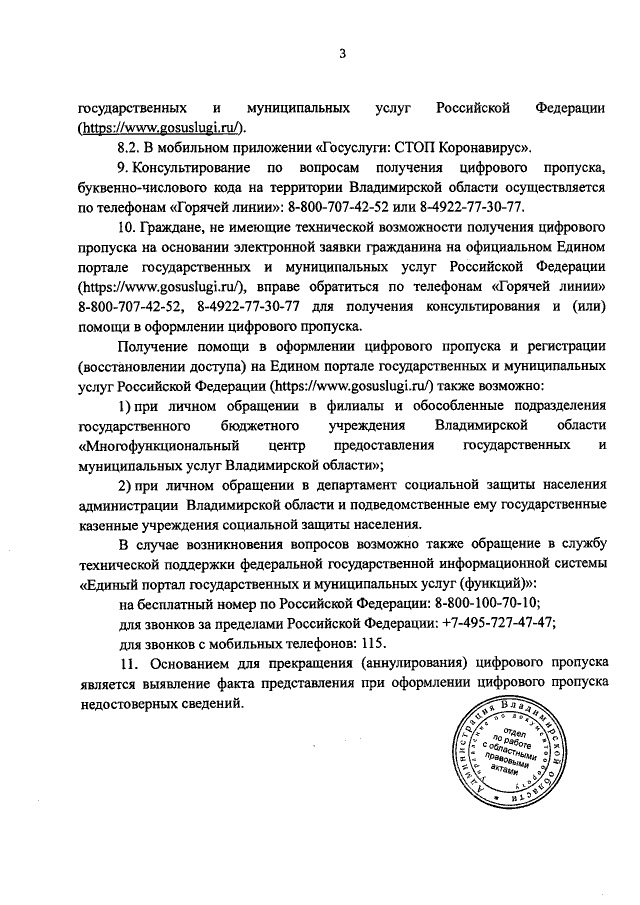 Если у гражданина нет технической возможности оформить пропуск с помощью мобильного или компьютера, можно обратиться по телефонам горячей линии: 8 (800) 707-42-52 или 8 (4922) 77-30-77.