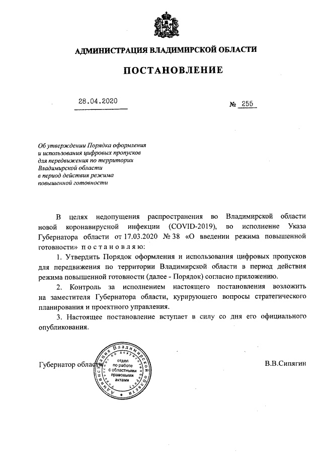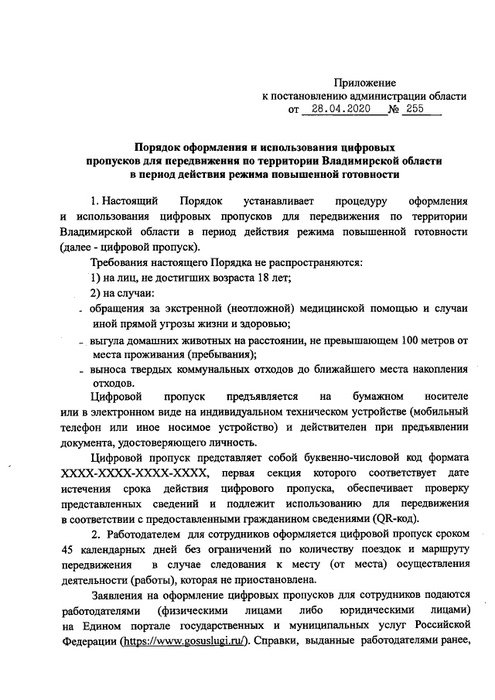Во Владимирской области введены цифровые пропуска для передвижения по региону