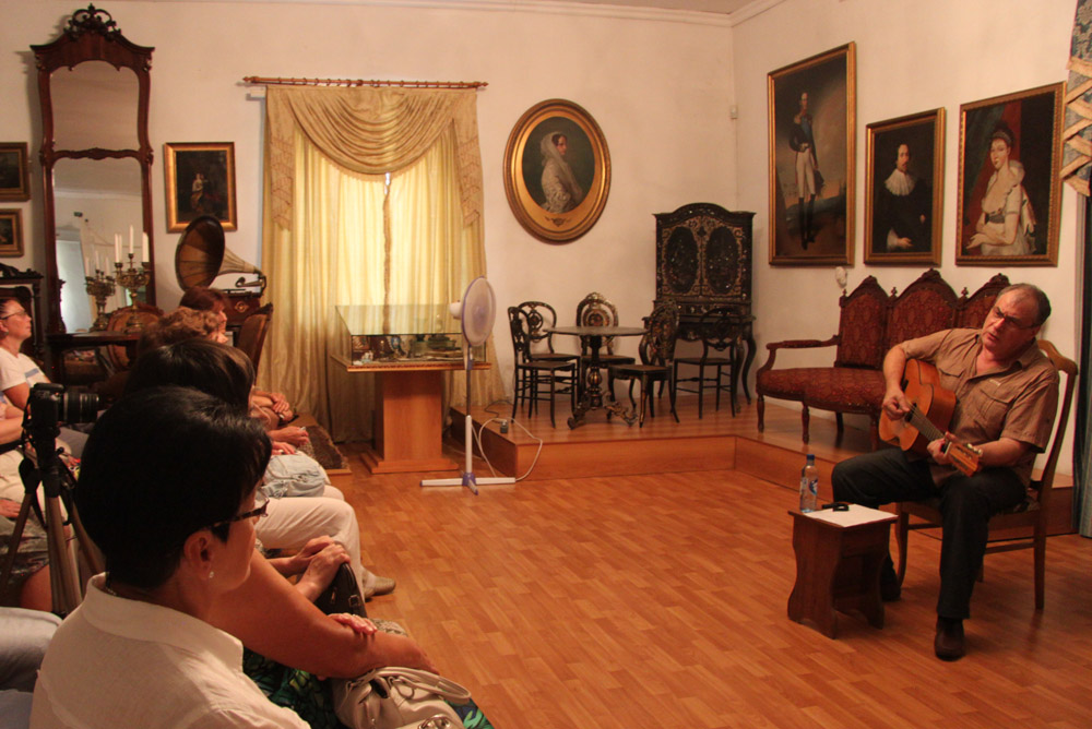 Июльский вечер, красивая обстановка, душевная атмосфера создали тот невидимый контакт, который столь необходим в камерных встречах. «Любви негромкие слова» от поэтов серебряного века, песни из репертуара незабвенного Вертинского звучали неспешно, проникновенно и трогательно. Музыкальная программа закончилась искренними словами благодарности артисту и признательности зрителю. Это был уже второй камерный музыкальный вечер. В планах музея (и по просьбе зрителей) сделать вечера традиционными.