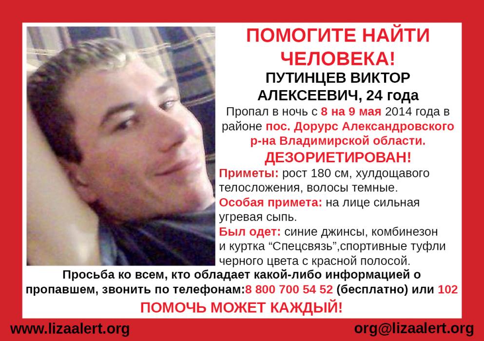Внимание! Пропал человек! Путинцев Виктор Алексеевич. Найден, жив!