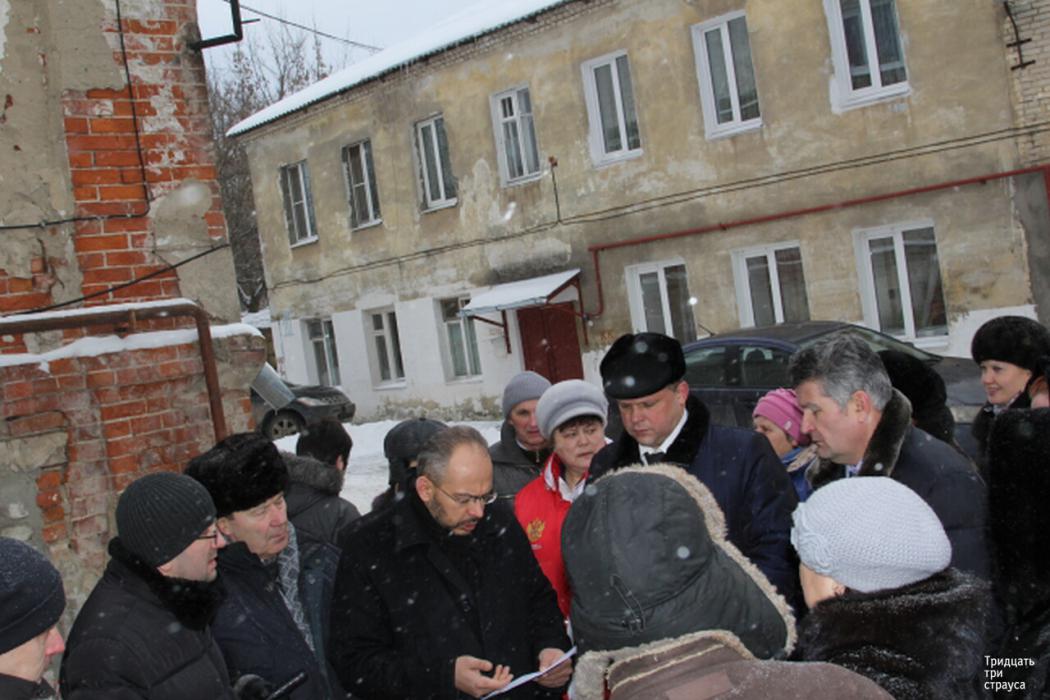 5 февраля руководитель Центра независимого мониторинга исполнения указов Президента РФ «Народная экспертиза» Николай Петрович Николаев посетил дом-памятник по адресу: г. Александров, улица Стрелецкой набережной, д. 11. По словам жильцов, стены в их квартирах постепенно разрушаются, появились глубокие трещины, постоянно осыпается штукатурка и повсюду грибок. С 2010 года жильцы дома ведут переписку с городской и районной администрациями и Государственной жилищной инспекцией Владимирской области на предмет признания дома непригодным для проживания, но безрезультатно. В августе 2014 года по инициативе жильцов была проведена независимая экспертиза по обследованию и оценке технического состояния дома, согласно заключению которой «техническое состояние сводов подвала дома является аварийным, в любое время свод может обрушиться вместе со всем домом; основные конструктивные элементы здания имеют износ 60-80%; жилой дом является непригодным для проживания». На основании результатов экспертизы граждане обратились в адрес администрации города Александров с просьбой признать дом аварийным, однако до сих пор не получили ответа.