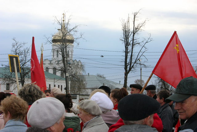Сегодня 1 мая в Александрове прошла демонстрация, организованная местным отделением КПРФ. Шли по улице Ленина. Митинг прошел на Советской площади, где идет монтаж сцены к 9 мая. Требования митингующих видны по лозунгам. Единоросс Владимир Толстов ( мэр города) принял самое активное участие в мероприятии.Ну, а меня, как всегда интересовала атмосфера, которую я пытаюсь передать на фото.