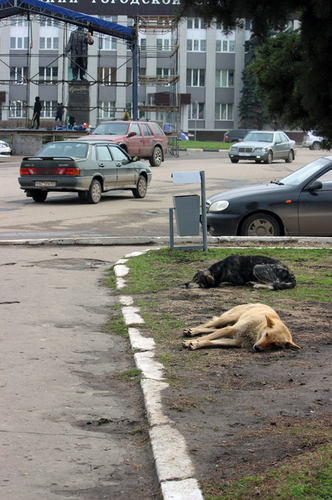 Александров моют, красят, украшают, но две проблемы не решаются совсем. В городе даже на центральной улице никакой критики не выдерживают тротуары. И на центральной площади бродячие псы чувствуют себя вполне комфортно.