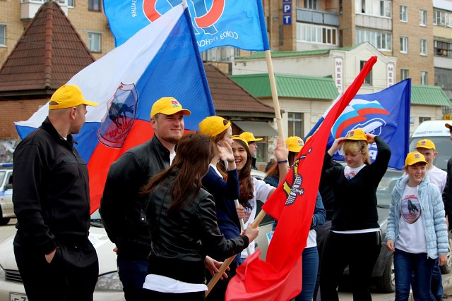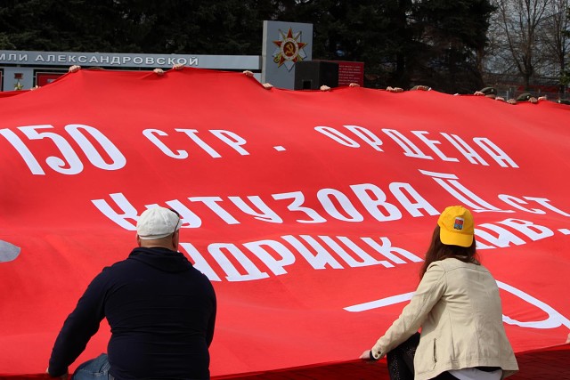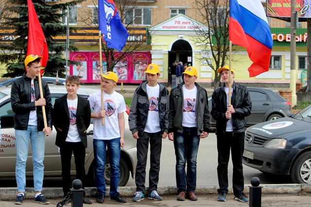 4 мая в Александрове торжественно встречали автопробег, который привез в город точную копию знамени Победы..