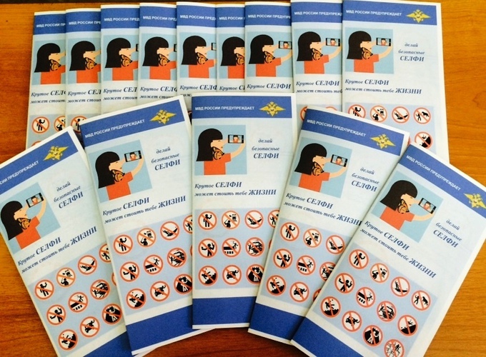 Внимательно изучив памятки «Безопасное селфи», ребята пообещали полицейским соблюдать все правила безопасности и не рисковать жизнью ради одного необычного кадра. А в доказательство того, что селфи могут быть интересными и без риска для здоровья, с удовольствием сфотографировались с гостями-полицейскими.
