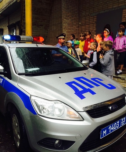Непогода не остановила ребят выйти на улицу и посмотреть служебный автомобиль дорожно-патрульной службы. Инспектор по безопасности дорожного движения ОГИБДД старший лейтенант полиции Вадим Чугайнов показал патрульный автомобиль ДПС, объяснил, как он устроен и для чего необходимы специальные сигналы. Ребята в свою очередь подготовили так называемые «кричалки», которые с помощью громкоговорителя поспешили продемонстрировать полицейскому.