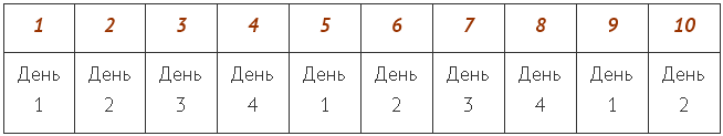 В течение следующих 4-х дней нужно повторить схему приклеивания пластыря «Фей Бу». На 9 и 10 день курса приклеивайте пластырь по схеме 1 и 2 дня соответственно.