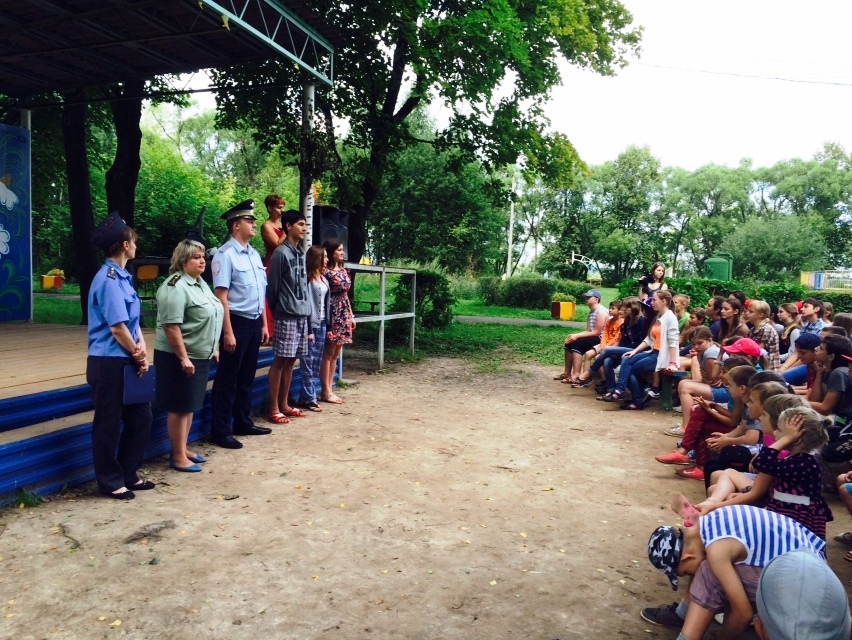 В рамках Единого дня профилактики сотрудники отдела по делам несовершеннолетних, инспекторы государственной инспекции дорожного движения совместно с представителем ФСКН посетили детский оздоровительный лагерь «Рекорд», где провели познавательную правовую викторину и организовали конкурс рисунков «Безопасность дорожного движения» и «За здоровый образ жизни».