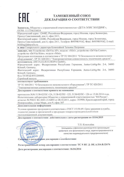 Устройства DeVita-AP воздействуют на звенья патогенеза патологических процессов и непосредственно на инфекционные причины, что позволяет производить положительное воздействие на течение многих хронических дегенеративных процессов. Таким образом, воздействие DeVita-AP является реальной профилактикой онкологических заболеваний.