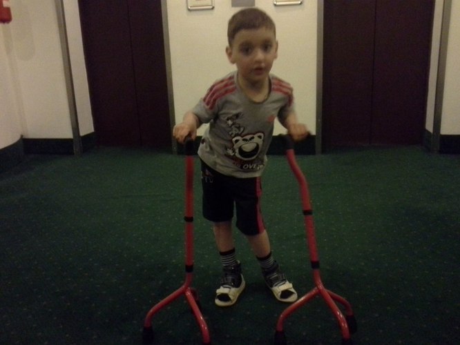 Наш малыш единственный и очень долгожданный ребёнок, родился на раннем сроке 32 недели весом 1350гр, рост 39см. На 5тые сутки он был переведен в отделение недоношенных г.Владимира и два месяца провёл там. Потом мы забрали его домой. Тимур рос хорошо, прибавлял в весе но с 6ти месяцев стал отставать в моторном развитии и в 10 мес. нам поставили этот страшный диагноз ДЦП. На тот момент я не знала ничего, куда ехать, к кому обратиться за помощью. В нашей области к сожалению, не хватает грамотных специалистов и новых методик лечения, которые уже давно успешно практикуются в других регионах, поэтому мне приходится ездить по всей России и за её пределы, чтобы лечить своего ребёнка. На все это требуются огромные средства, т.к. лечение и реабилитация тяжелобольных деток — это не единоразовая поездка и результат не всегда виден сразу, это ежедневный тяжелый труд. То, чему здоровых детишек иногда даже и учить не нужно (например держать ложку, одеваться, подниматься по лестнице и т. д.) наших приходится учить месяцами, а иногда и годами. Сейчас мы умеем ползать на четвереньках, вставать у опоры, ходить с поддержкой, сын знает много стихов, разговаривает, наша проблема заключается в том что самостоятельно он не ходит, а так хочется чтобы научился всё делать САМ. Мы лечились во Владимире, в Иваново, в Туле, сейчас лечимся в Москве, так же ездили в Украину и на курсы реабилитации. К настоящему времени мы добились следующих результатов: Тимур сам стал ходить по стенке и даже стало получаться ходить с палками-опорами!!! Сам стал кушать и ходить в туалет! Для меня это счастье, видеть что он хоть немного стал самостоятельным!