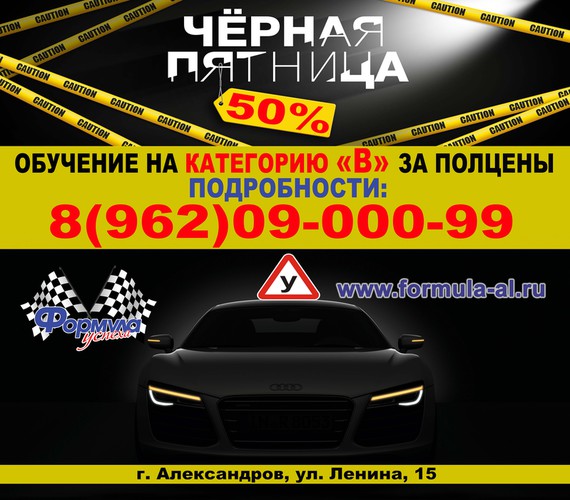 Автошкола "Формула успеха" продолжает  УБОЙНУЮ АКЦИЮ!!! Осталось всего два дня, когда действует предложение, которое мы назвали "ЧЕРНАЯ ПЯТНИЦА". Позвоните нам и запишитесь на обучение на категорию "В" всего за полцены!!! Акция заканчивает своё действие в пятницу 2 сентября в 23.59! Мы экономим ваши деньги, предлагая ЛУЧШИЕ УСЛОВИЯ в Александрове!!!