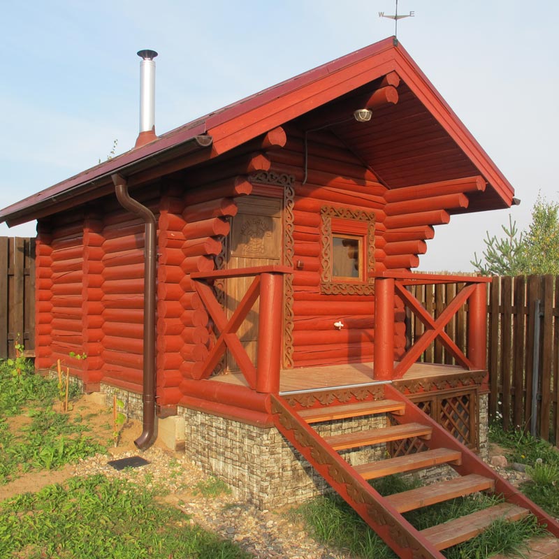 Предлагаем вашему вниманию готовые мини баньки. Наши бани изготовлены из экологически чистого Архангельского зимнего леса (сосна). Диаметр бревна 200 мм. Баня устанавливается на металлический каркас, который служит фундаментом. Между венцами прокладывается джутовое полотно, бревна скрепляются между собой березовыми нагелями. В бане полностью сделана внутренняя отделка, электропроводка, установлен полог из липы. Вставлены окна, двери. Кровля из гибкой черепицы Shinglas (Финляндия). Наши баньки удобны тем, что размер их составляет 3х6м, такую баню удобно расположить даже на маленьком участке, если к вашему участку сложно подъехать тяжелым транспортом, то у нас есть альтернатива - мы привезем баню в разобранном виде и в течении 5 рабочих дней соберем!