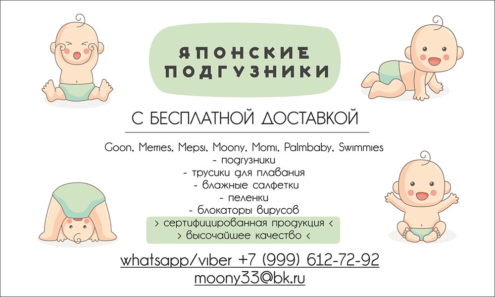 Широкий ассортимент Японских подгузников, бесплатная доставка Александров, Струнино, Карабаново. Сертифицированная продукция. Высочайшее качество.