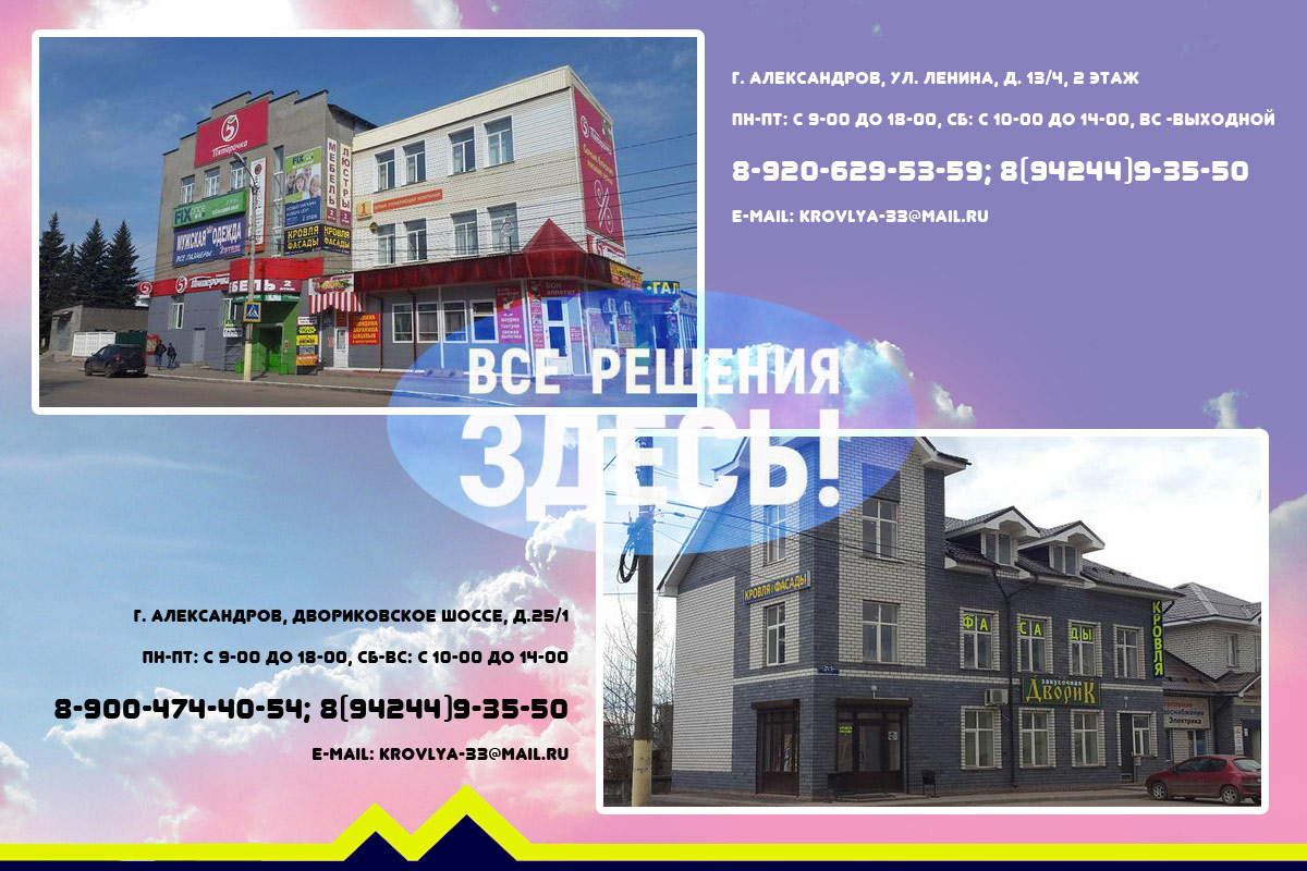 - Кровля (металлочерепица, профнастил)
